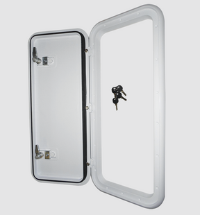 Utilize the cavities in your RV body to create much needed storage space and use the Coast Doors to access them. Available in eight handy sizes, the Coast Doors are available in white with a smooth and modern finish. Installation has been streamlined – screw holes are pre-drilled and they are supplied as a complete door, meaning there is no need to infill. It features an effective door seal and comes with keys to lock and reopen.