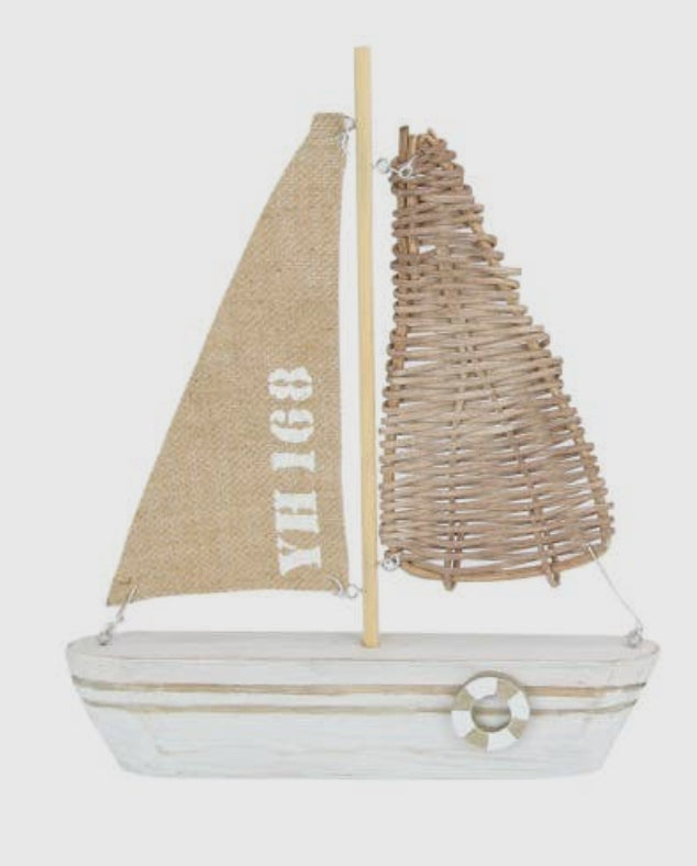 This 28cm ornamental sailing boat is perfect for bringing a coastal decor touch to your living space. The rattan-look sail adds a subtle nautical vibe to any room.